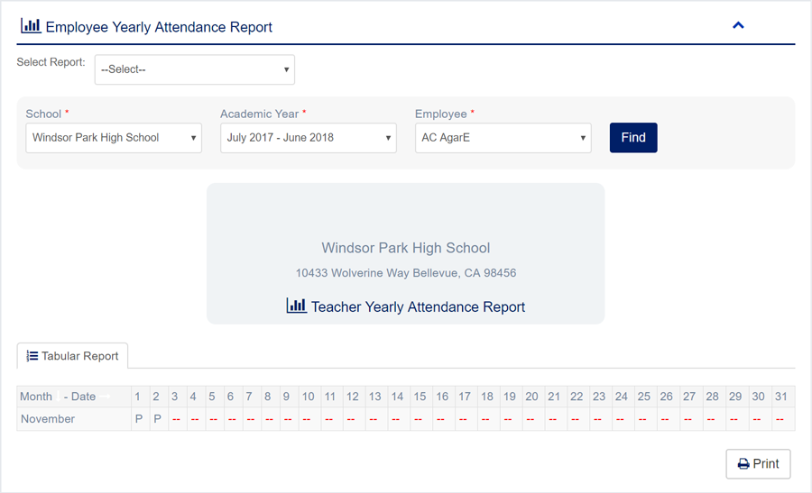 - Teacher Attendance Report
