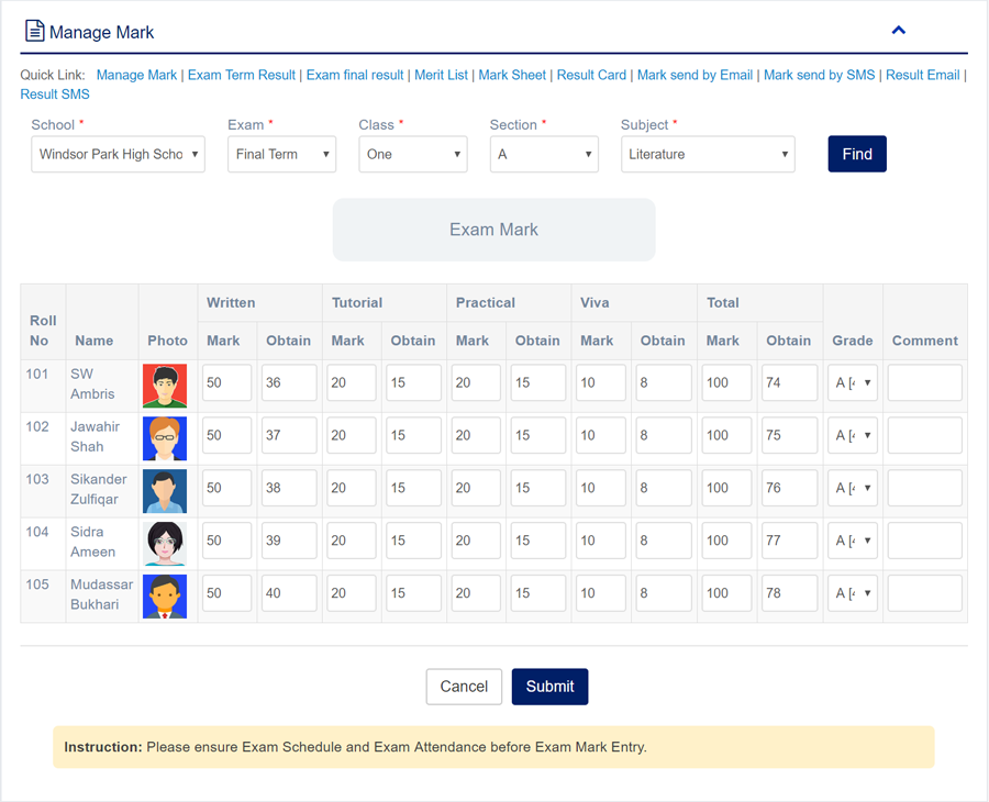 - Exam Result Report