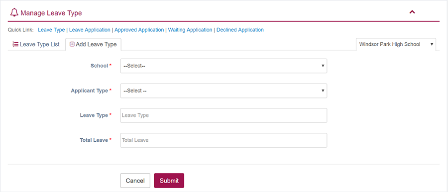 1. Login to System Admin Panel. 2. Select Manage Leave Application sub menu under Leave menu from left side bar. 3. To Add/Create new Leave Application click Add Leave Application tab. 4. To Edit Leave Application Click Edit button in the Leave Application list. 5. To Delete Leave Application Click Delete button in the Leave Application List. 6. You are done with Manage Leave Application feature.