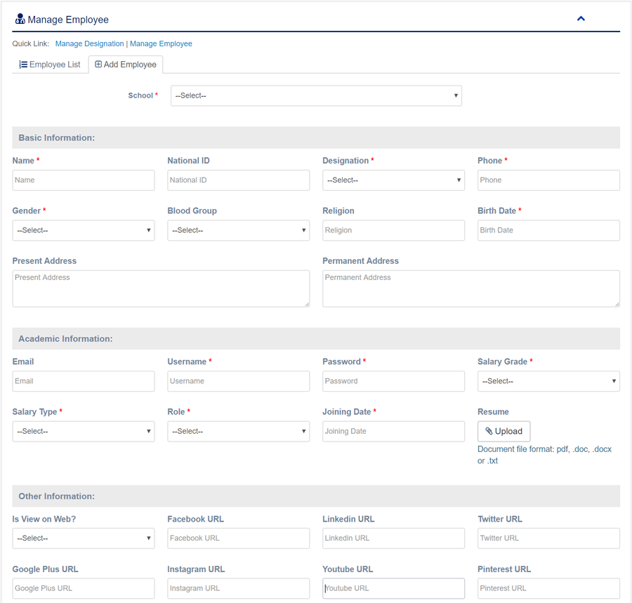- Employee/ Teacher/ Student Profile Photo