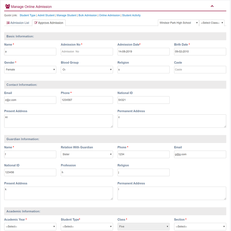 1. Login to System Admin Panel. 2. Select Online Admission sub menu under Student main menu from left side bar. 4. To Approve Online Admission Click Approve button in the Online Admission list. 5. To Delete Online Admission Click Delete button in the Online Admission List. 6. You are done with Manage Online Admission feature.