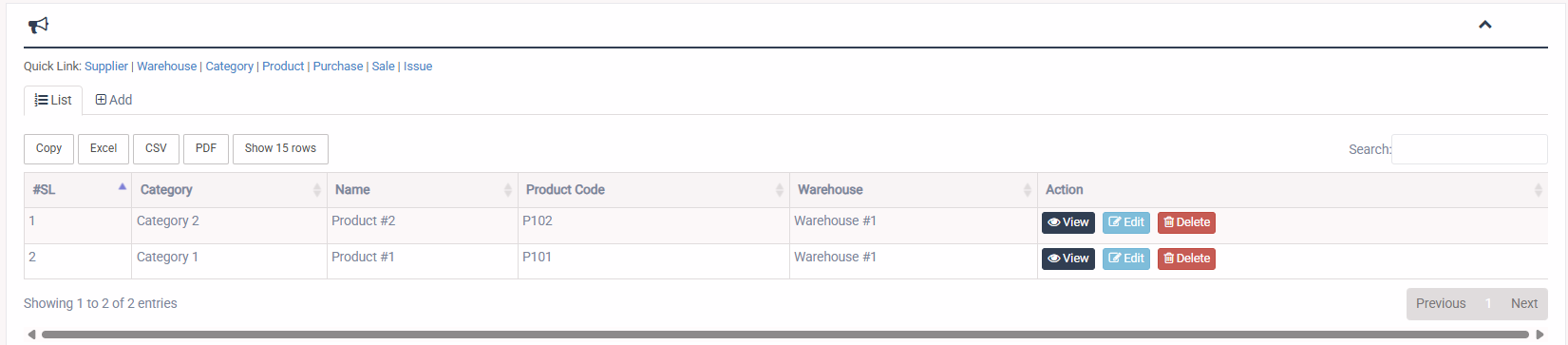 1. Login to System Admin Panel. 2. Select Warehouse sub menu under Inventory main menu from left side bar. 3. To Add/Create new Warehouse click Add tab. 4. To Edit Warehouse Click Edit button in the Warehouse list. 5. To Delete Warehouse Click Delete button in the Warehouse List. 6. You are done with Manage Warehouse feature.![]()