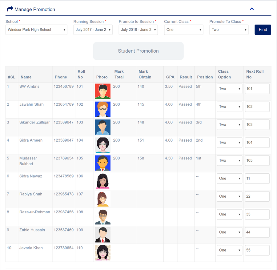 - First select the Academic Year, Class, and Section